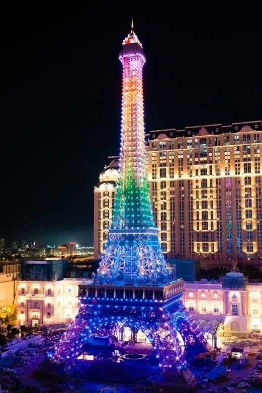 澳門巴黎人的巴黎鐵塔以鋼鐵建造,高度為原建築物的二分之一,設有超過6,600盞燈及26公里長的電纜,相當於10條澳門嘉庇樂總督大橋的長度。在澳門巴黎人9月正式開幕後,旅客將可乘搭鐵塔上的兩座戴客電梯,從地面到觀景台只需約40秒。