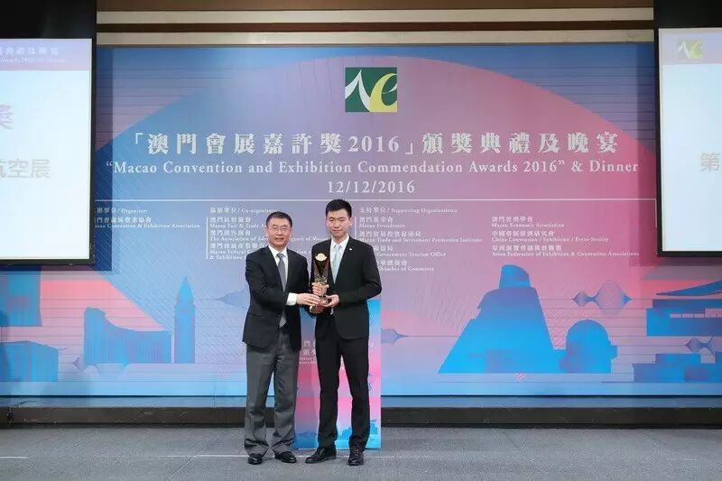 作為澳門會展業界的一大盛事,「澳門會展嘉許獎2016」已於2016年12月12日假澳門旅遊塔會展娛樂中心三樓圓滿舉行。今屆共頒發六大獎項予十個獲獎會展品牌。