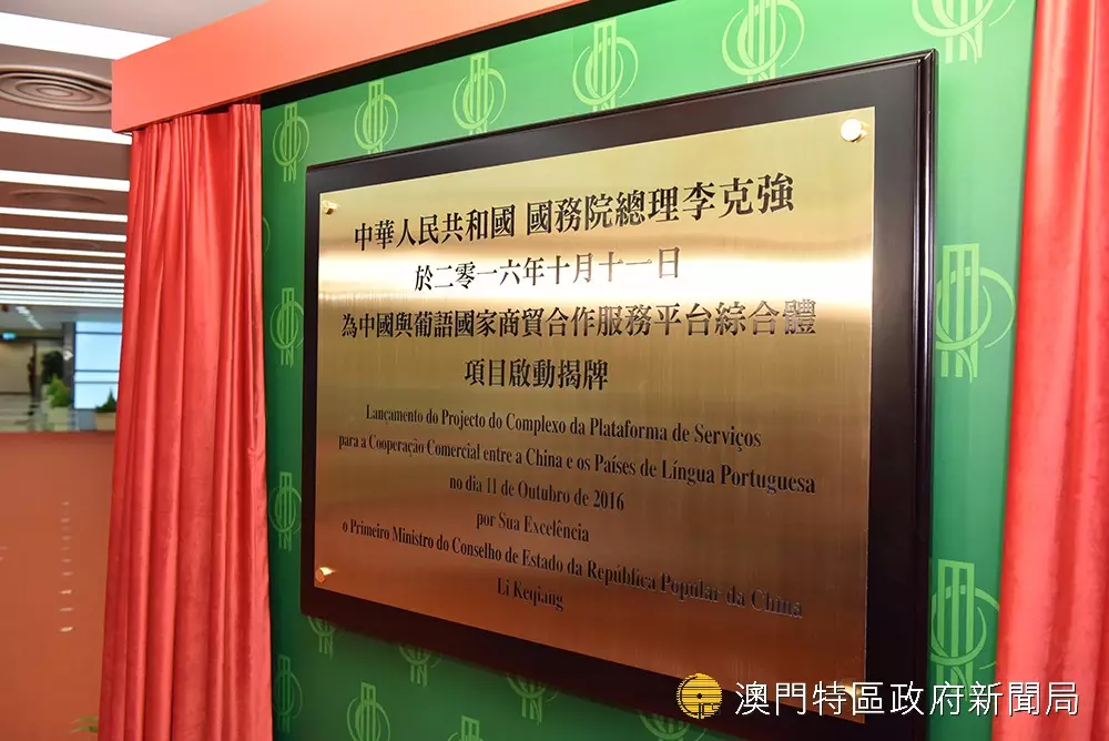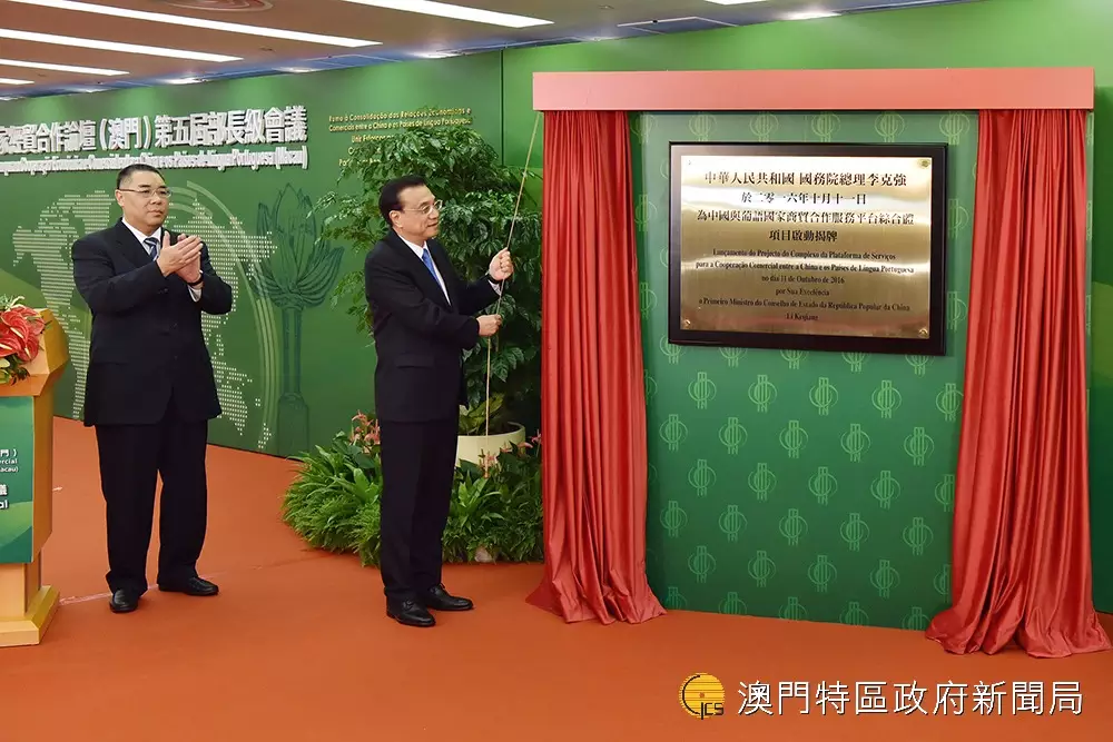 在會議開幕式前,總理李克強主持了“中國與葡語國家商貿合作服務平台綜合體”揭牌儀式。