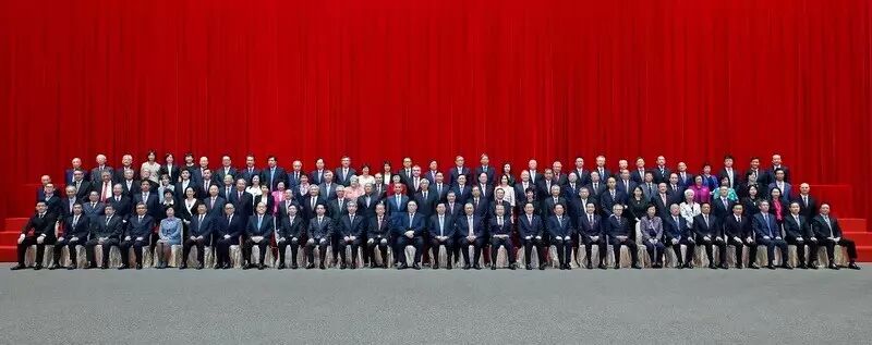 全國人大常委會委員長張德江在澳門東亞運動會體育館會見澳門社會各界人士並合影